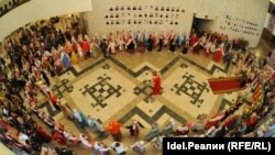 Место нынешней встречи столь высокого собрания представителей малых народов выбрано не случайно. В Чувашии десятилетиями в мире и согласии проживают люди 128 национальностей и 8 этнических групп. Всего в форуме приняли участие делегации из 10 регионов России и представители 34 национально-культурных объединений Чувашии. На два дня Чебоксары стали столицей национальных меньшинств разноязыкой и многоликой России.