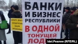 В акции приняло участие около 80 человек. Как рассказал "Idel.Реалии" один из организаторов, в пикете приняли участие клиенты банков из Казани, Набережных Челнов, Елабуги, Альметьевска.