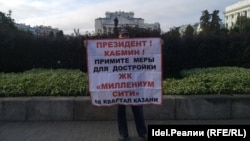 Дольщики ЖК "Миллениум Сити" вышли на одиночные пикеты у стен кабмина РТ