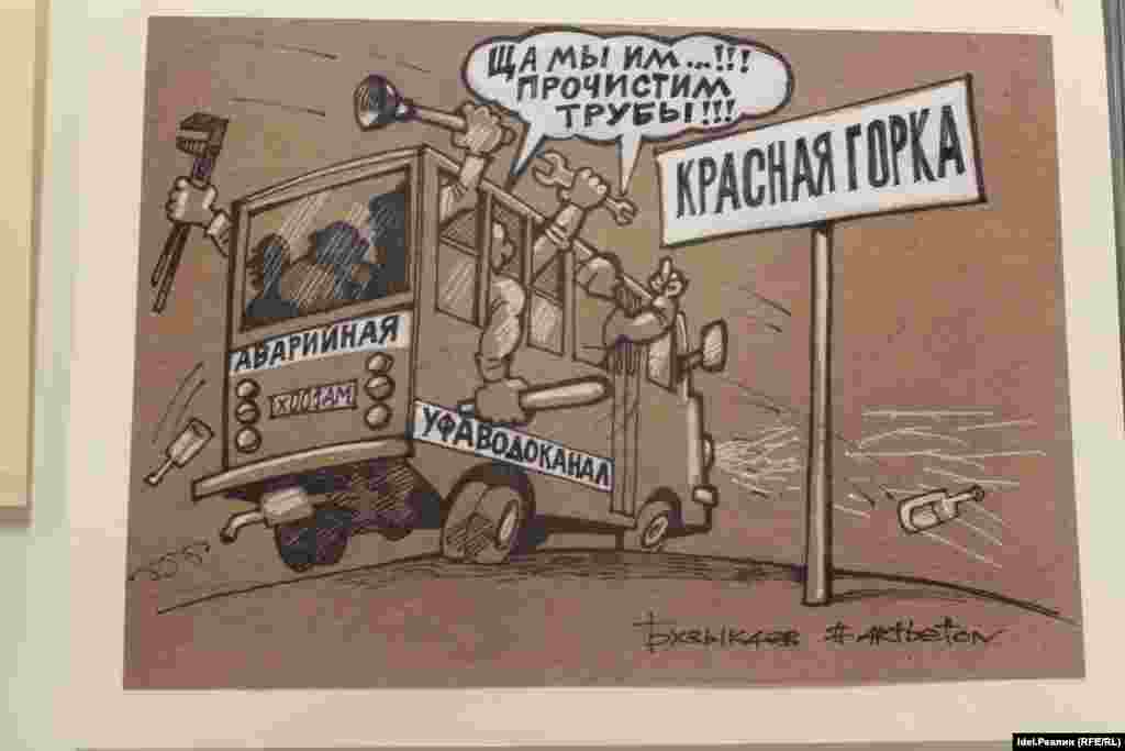 Шаржи художника, ставшего в короткое время популярным, появляются в его аккаунтах в социальных сетях, буквально, каждый день. Талантливая карикатура на злободневную тему всегда актуальна, и рисунки Камиля Бузыкаева то и дело перепечатывают многие уфимские средства массовой информации. Персонажами его зачастую едких картинок становятся дерущиеся полицейские, сносящие архитектурные памятники местные застройщики, неспособные справиться ни со снегопадами, ни с ливнями чиновники городской администрации, избирающийся, фактически, безальтернативно, уфимский мэр, местные политики, деятели культуры, спортсмены, журналисты... Героем одного из шаржей стал и уфимский корреспондент "Idel.Реалии", аккредитовать которого отказались депутаты горсовета.