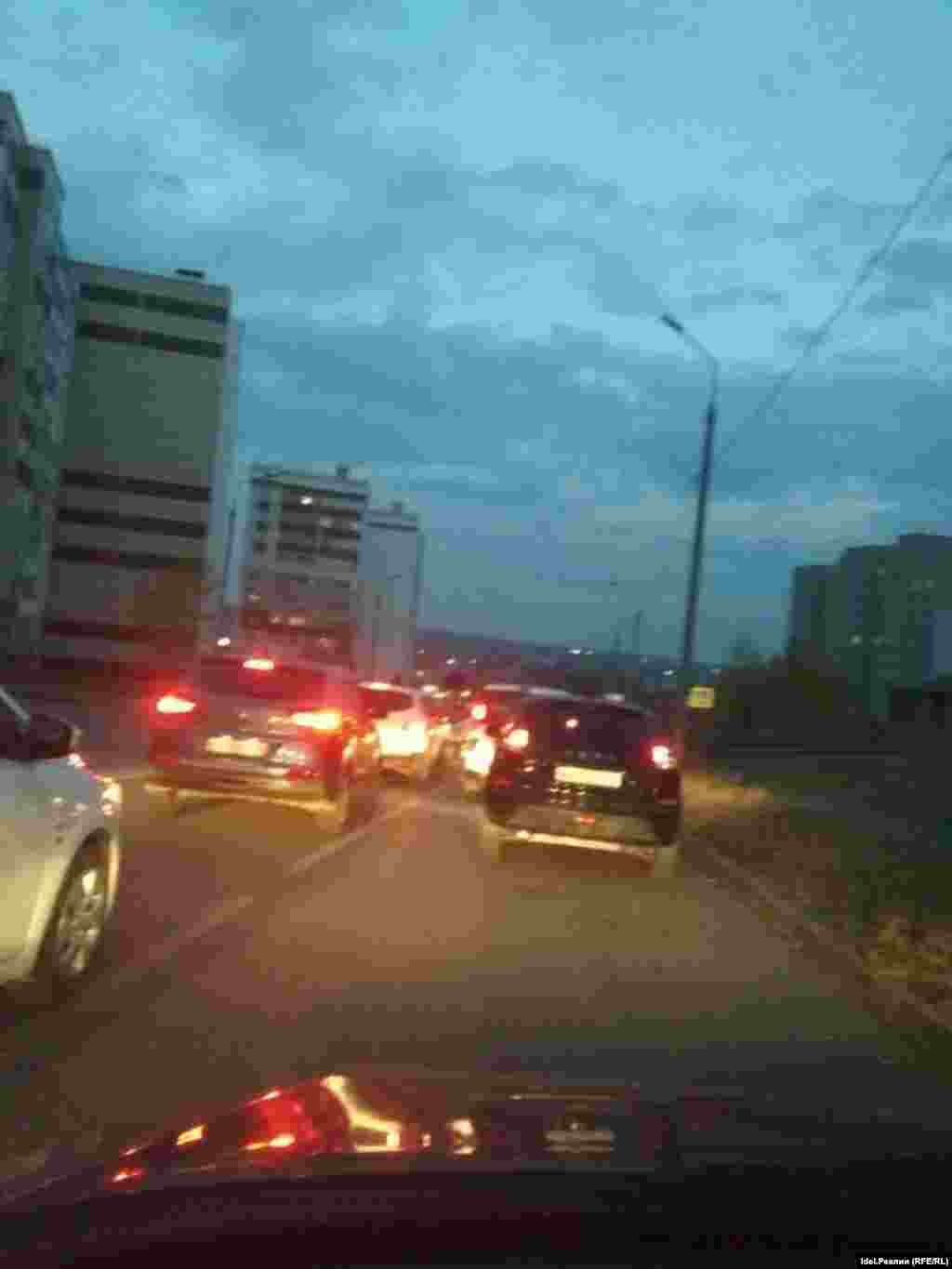 Пробки на въезде в посёлок Вознесение