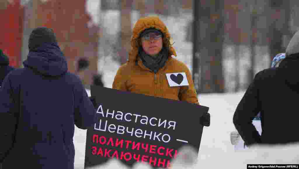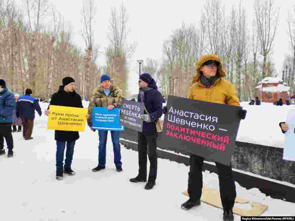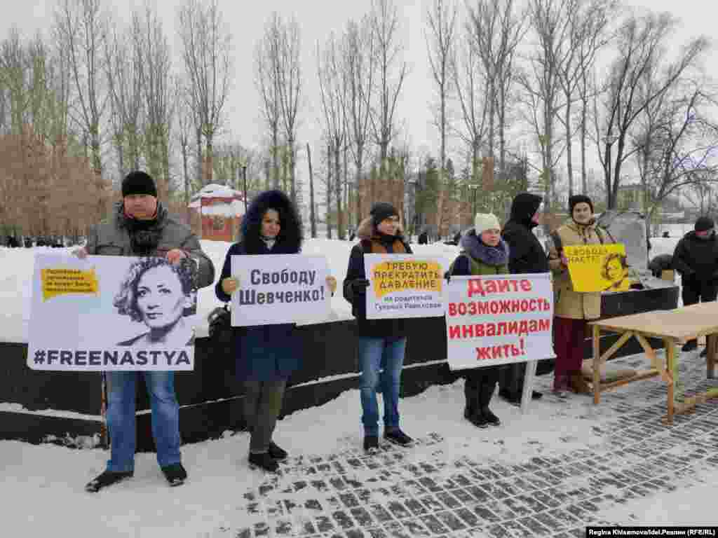 В Казани прошел пикет в поддержку активистки "Открытой России" из Ростова-на-Дону Анастасии Шевченко, в отношении которой возбуждено уголовное дело. Она находится под домашним арестом. Один из плакатов призывал прекратить преследование казанской активистки Гульназ Равиловой. Член совета татарстанского отделения "Открытой России" на днях сообщила о преследовании своего отца.