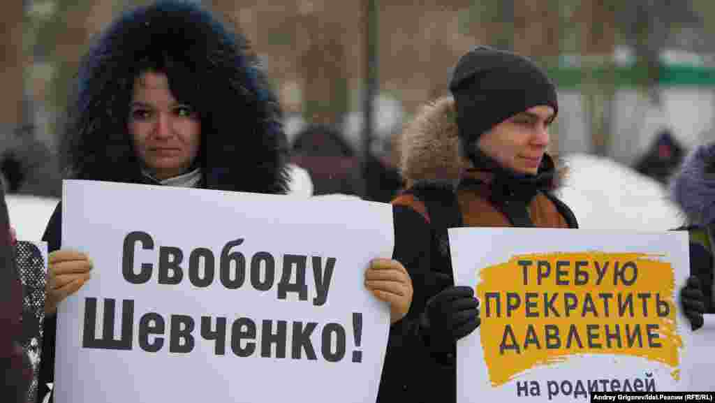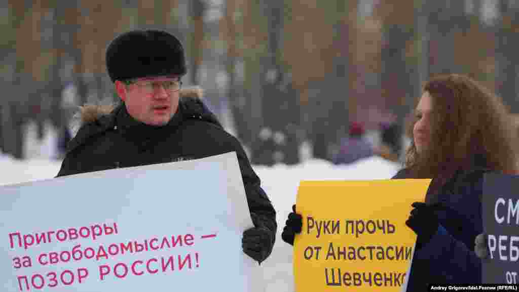 В Казани прошел пикет в поддержку активистки "Открытой России" из Ростова-на-Дону Анастасии Шевченко, в отношении которой возбуждено уголовное дело. Она находится под домашним арестом. Один из плакатов призывал прекратить преследование казанской активистки Гульназ Равиловой. Член совета татарстанского отделения "Открытой России" на днях сообщила о преследовании своего отца.