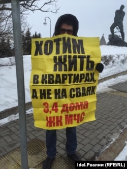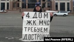 Сегодня, 16 марта, дольщики ЖК "МЧС" в очередной раз вышли на одиночные пикеты у зданий Кабинета министров РТ и исполкома Казани. Они требуют достройки их домов.