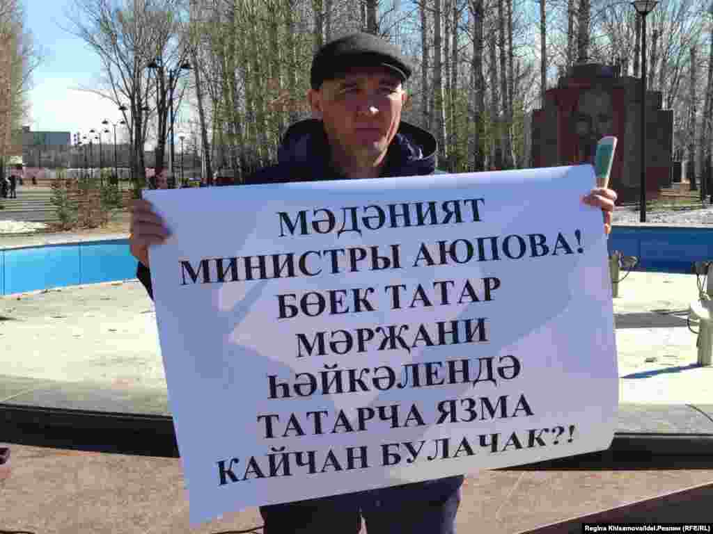 Фотографии с митинга в поддержку татарского языка, культуры, национального образования и государственности татарского народа в Казани. Мероприятие приурочено к 106-летию со дня кончины татарского поэта Габдуллы Тукая.