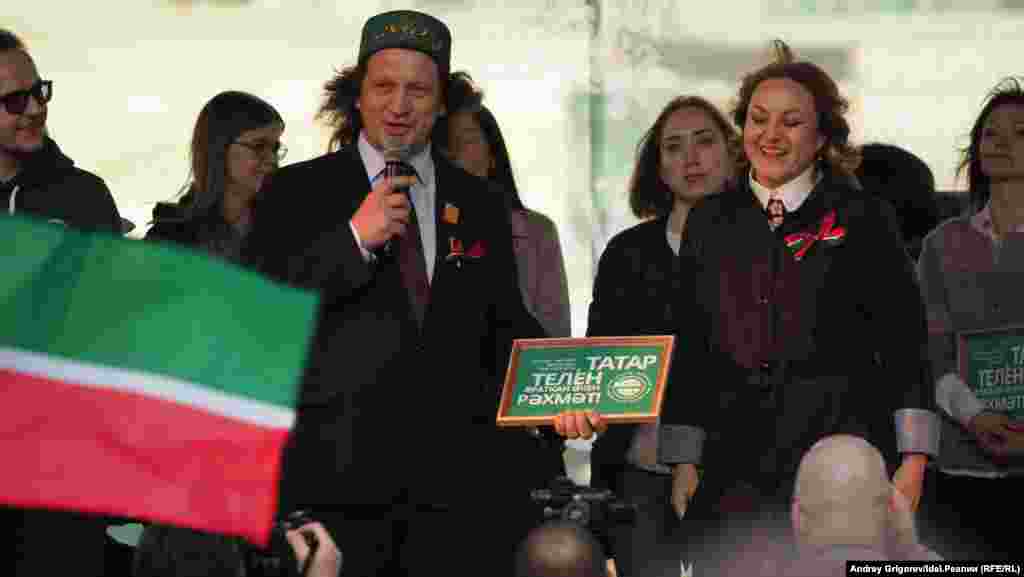 В этом году премии за популяризацию и поддержку татарского языка получили директор школы "СОлНЦе" Павел Шмаков, Сбербанк, а также представители двух радиостанций —​ "Эхо Москвы" и "Бим-Радио". Антипремию — "Тяжело с татарским" — получил выставочный центр "Kazan Expo". Чем руководствовалось жюри, и за что вообще вручаются премии и антипремии акции "Мин татарча сөйләшәм!" мы расскажем чуть позже.