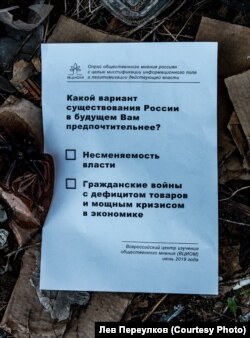 "Когда я делал опросники ВЦИОМа, я во многом вдохновлялся московскими концептуалистами и их методами. Потому что они как раз пародировали канцелярит, они пародировали советскую культуру, причем культуру партийной верхушки. Я специально, намеренно соблюдал этот стиль, который очень напоминает такие муниципальные документы, с характерным шрифтом, с характерными элементами дизайна. Сначала я хотел просто опубликовать их в интернете, но решил сфотографировать их на земле, чтобы они появились в реальности, чтобы еще сильнее были похожи на реальные документы. Естественно, я не хотел, чтобы люди это неправильно восприняли и думали, что это настоящие опросы. Если прочесть внимательно, сразу понимаешь, что это пародия, что это переделка".