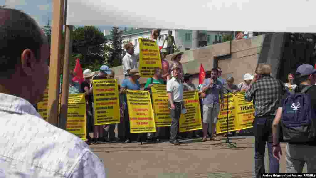 Неожиданностью для участников митинга, состоявшегося в Кировском районе у Красных ворот, стало отсутствие ставших уже привычными для казанских митингов ограждений с досмотром каждого входящего на территорию, отведенную под митинг, сотрудниками полиции. Да и самих полицейских были непривычно мало. Фотокор "Idel.Реалии" насчитал всего пятерых блюстителей закона в форме и, кроме того, не заметил примелькавшихся уже лиц сотрудников центра "Э".