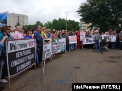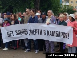 "Нет переработке отходов в Камбарке!", — подхватывает толпа предложенный очередным выступающим лозунг.