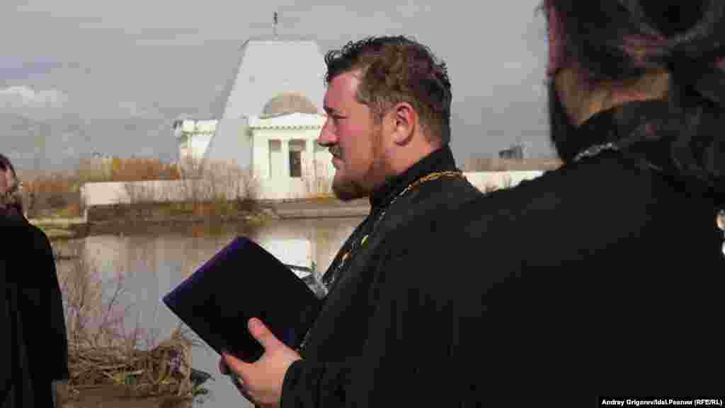 После окончания молитвы небольшая группа верующих во главе с председателем Общества русской культуры РТ Михаилом Щеглов добралась до храма-памятника, на катере, предоставленном МЧС.