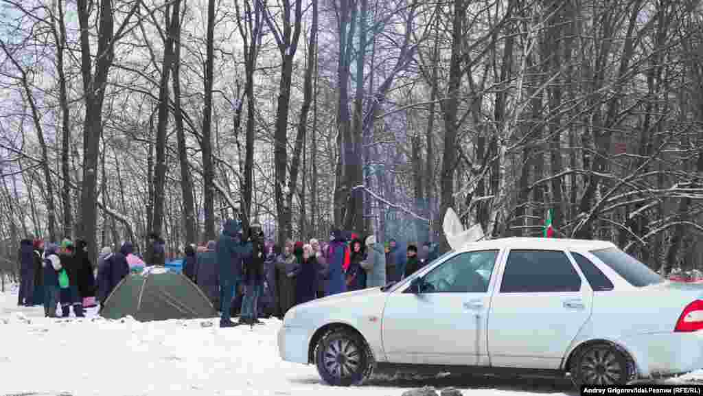 Экоактивисты и местные жители продолжают дежурство в лагере, который сменил имя с Казанского Шиеса на "палаточный лагерь Диоксиново им. Р.Н.Минниханова". Об этом возвещает баннер, прикрепленный к ограждению, ранее установленному строителями. Подробнее о причинах разбивки лагеря и сопровождавших её событиях можно прочесть здесь и здесь.