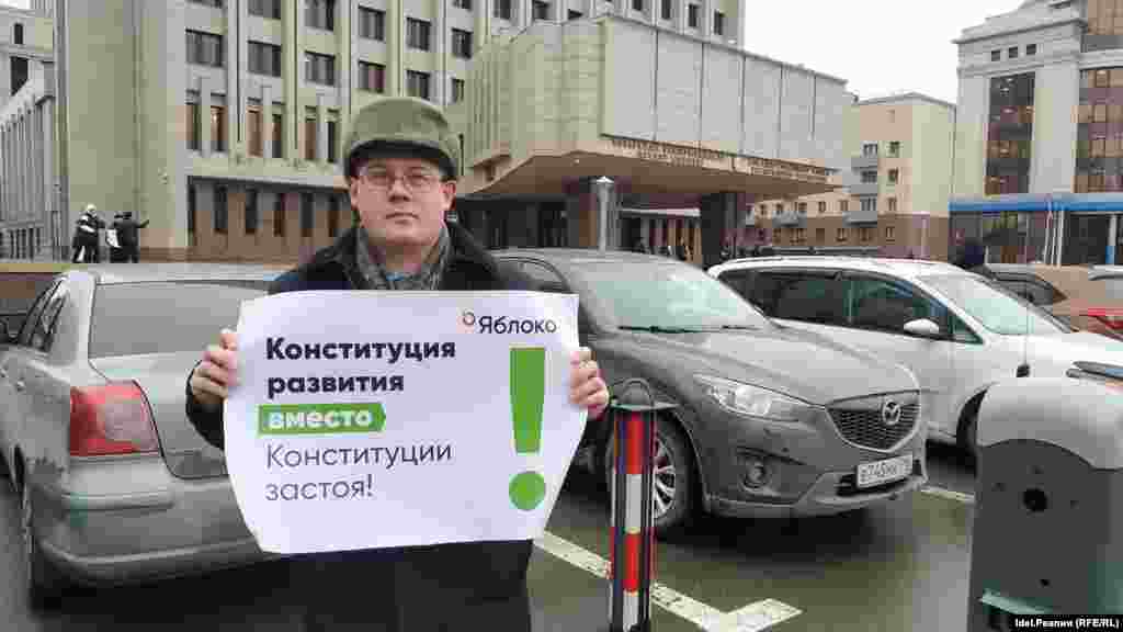 Сегодня, 12 марта, на сессии Госсовета РТ, поправки к Конституции вынесены на голосование. Активисты вышли с одиночными пикетами, призывая депутатов голосовать против. 11 марта, Депутаты Госдумы в третьем, окончательном, чтении приняли поправки. Среди них есть поправка о русском языке. "Государственным языком РФ на всей ее территории является русский язык как язык государствообразующего народа, входящего в многонациональный союз равноправных народов Российской Федерации". Эксперты в национальных республиках уже выразили свое мнение, что данная поправка противоречит духу нынешней Конституции, демократии и федерализма. Также состоится голосование по обнулению президентских сроков.