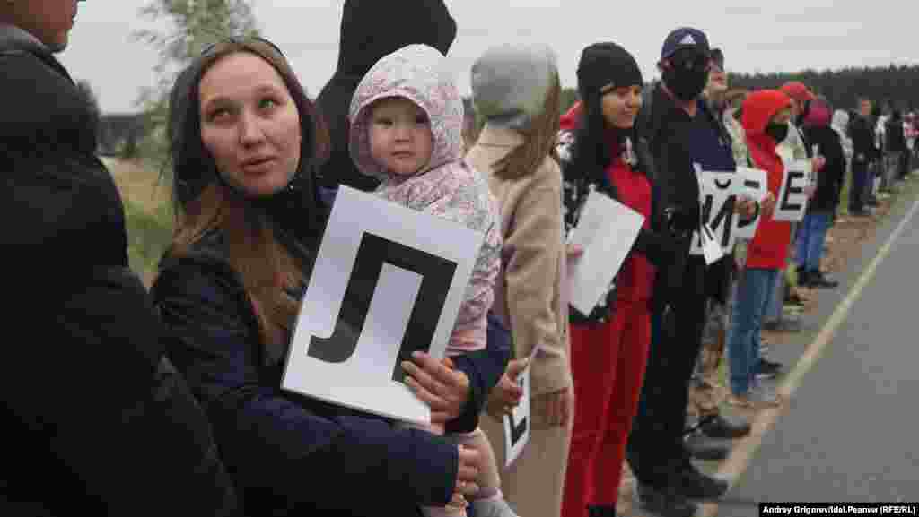 На автодороге у села Тарлаши, вдоль которого проектировщики планируют протянуть магистраль, собралось около семисот человек. Люди стояли вдоль трассы, держа в руках буквы, которые складывались в названия их населенных пунктов. Затем участники схода выстроилось в гигантские буквы так, чтобы сверху можно было прочитать слово "Стоп". Организаторы снимали акцию с квадрокоптера.