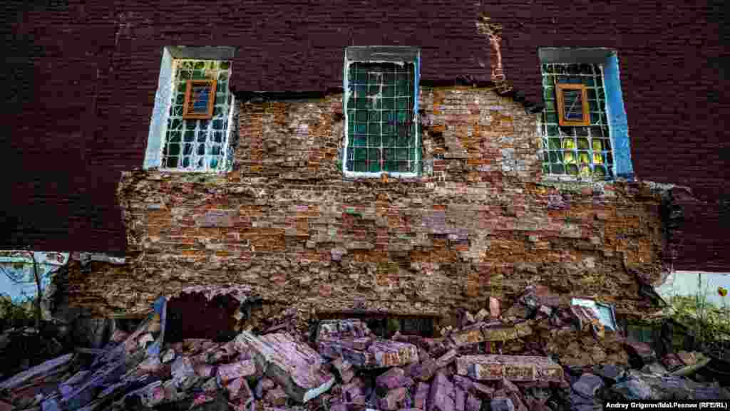 Журналисты "Idel.Реалии" успели побывать в здании в ночь накануне окончательного сноса — несмотря на то, что к тому моменту девелопер уже успел частично разрушить боковые стены, строение, официально объявленное "аварийным", по-прежнему крепко стояло на фундаменте. Общественники и краеведы всё еще надеялись, что компромисс будет найден и баню удастся сохранить.