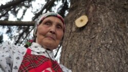 — Несколько сакральных кругов имеет эта ёлка. Где можно говорить, там я говорю: да, можно говорить. К ёлке подошли — тоже: я вам говорю об этой ёлке, потом подношения пошли. Когда подношение идёт — тишина. Бабушки тоже помолются. По христиански молитесь вы? — обращается к двум пожилым женщинам в национальных костюмах Екатерина. — Как можете, так и молитесь. Как вы поминаете ушедших — тоже так же. А я подношения делаю хозяину леса.