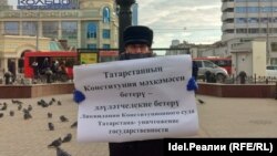 "Ликвидация Конституционного суда Татарстана — уничтожение государственности" и "Депутаты Госсовета РТ! Защитить Конституционный суд РТ ваш долг" — с такими плакатами вышел сегодня активист.