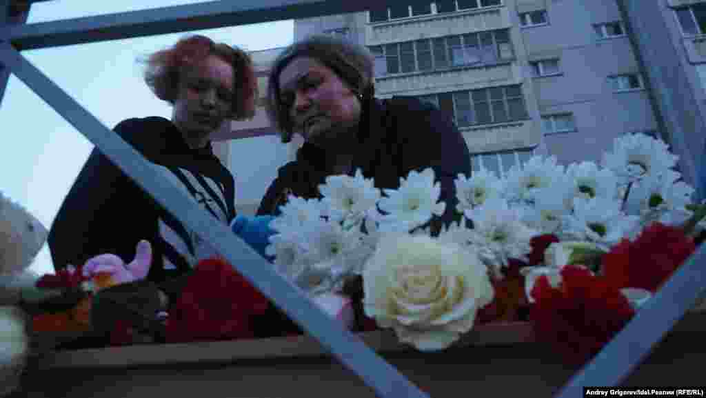 Казанцы до поздней ночи несли цветы, мягкие игрушки и свечи к школе, которая 11 мая подверглась атаке вооруженного ружьём 19-летнего парня. Уже в восемь вечера импровизированный мемориал утопал в цветах и плюшевых мишках. Он был организован на газоне наискосок от школы. К самому учебному заведению многочисленных казанцев не подпускала полиция.
