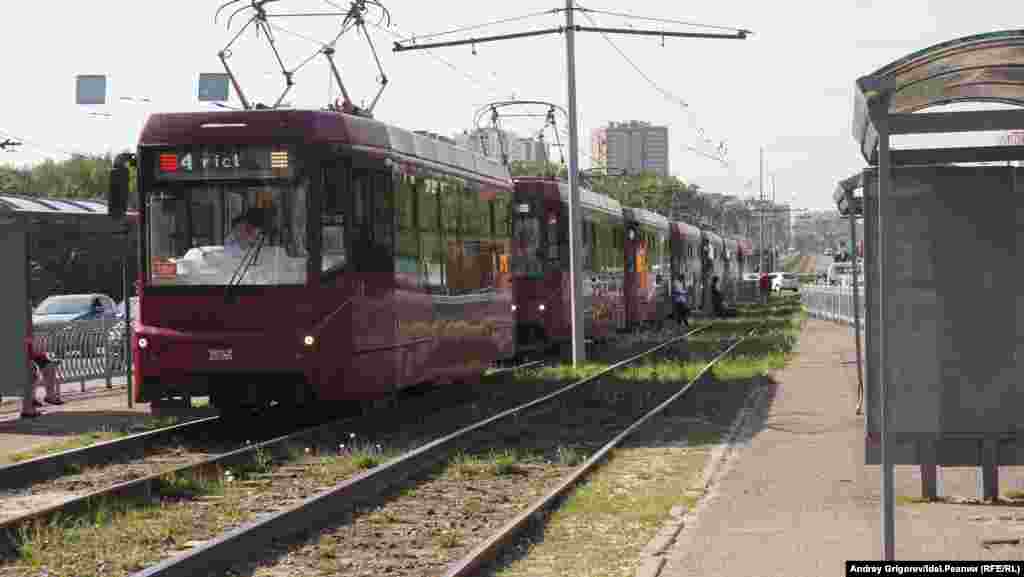 Вновь трамваи четвёртого маршрута остановились уже после обеда. На сей раз у станции метро "Горки" произошла поломка на рельсах. В результате между улицей Родины и ТРЦ "Горки парк" образовалось скопление не менее чем из десяти пустых вагонов.