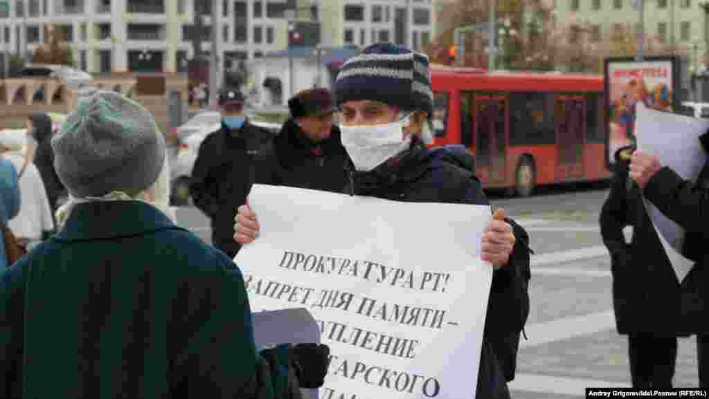 В этот раз активисты ВТОЦ решили не дожидаться даты и провели массовый пикет в защиту Хәтер көне у театра Камала. В акции участвовали полтора десятка человек.