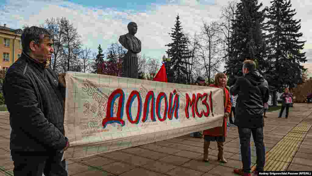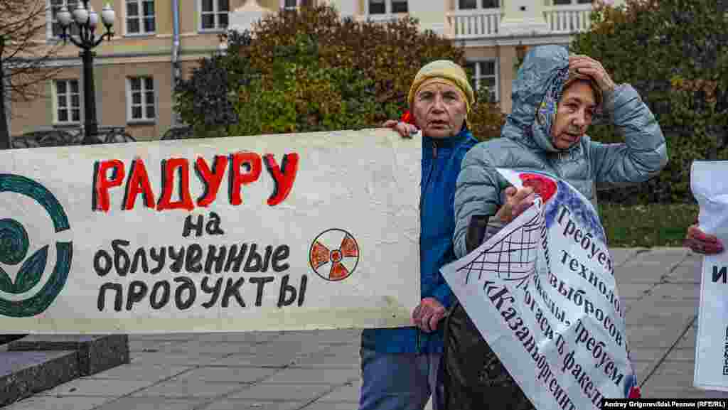 Надпись на одном из транспарантов гласила "Долой МСЗ!", "Радуру на облученные продукты!", требовал другой плакат (Радура — интернациональный символ маркировки облученных продуктов питания). Ещё один альтернативный плакат гласил — "Могильник уничтожает Голубые озёра". Имелся в виду расположенный под Казанью могильник радиоактивных отходов ФГУП спецкомбинат "Радон". Представители Антиядерного общества РТ уверены, что часть содержимого подземных хранилищ по причине разгерметизации контейнеров просачивается в грунт, а оттуда попадает в водоёмы.