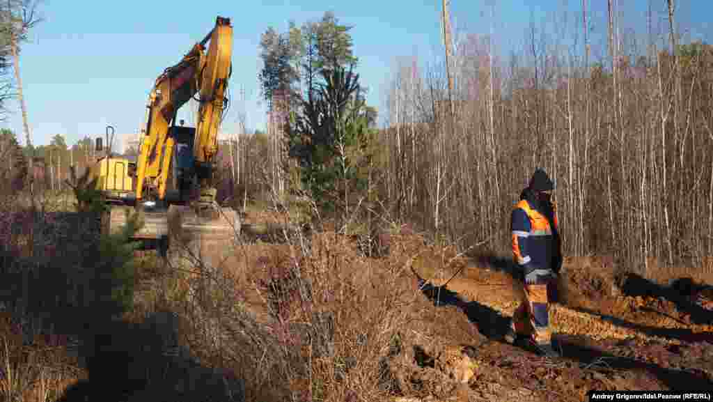 Всех разрешительных документов у строителей, по всей видимости, нет. При виде камеры они сворачивают работы и ретируются.