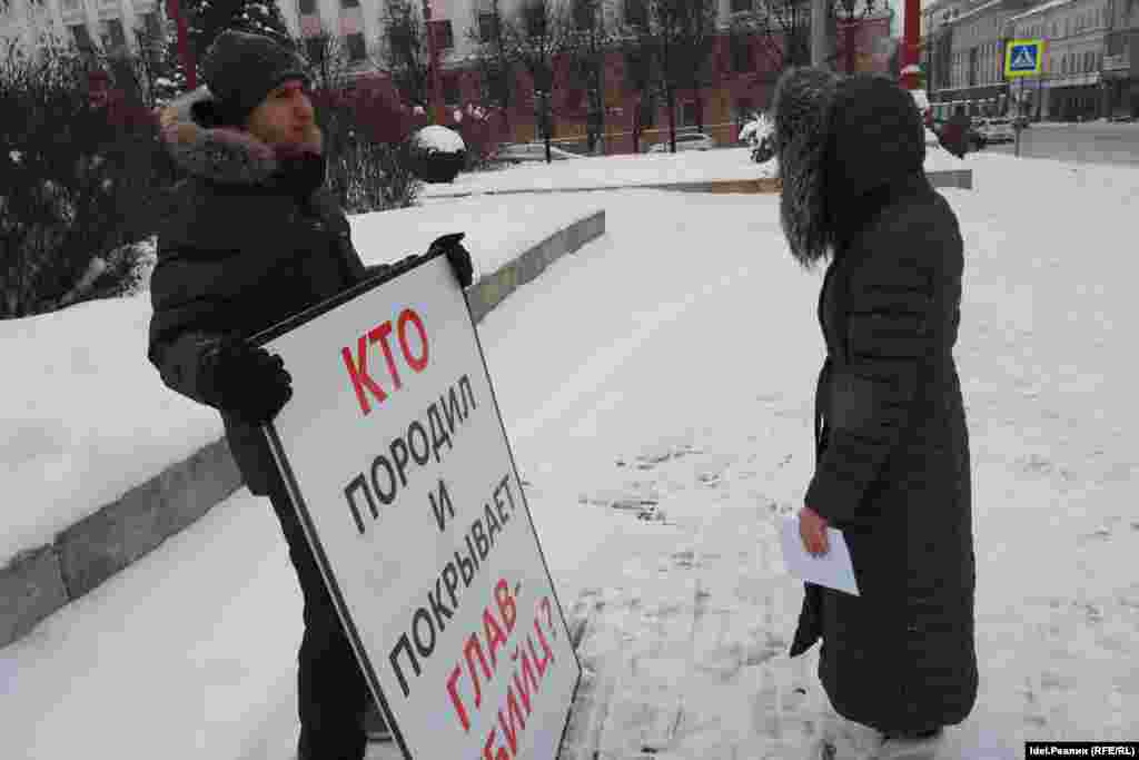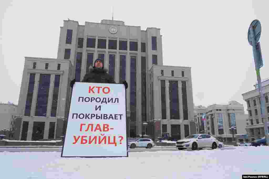 Житель Зеленодольска Алексей Соловьёв 12 января провёл одиночный пикет на площади Свободы в Казани. В руках он держал двусторонний плакат, на одной стороне которого была надпись "Кто породил и покрывает глав-убийц?", на второй — "Батин = Гафуров". Соловьёв провёл параллели между нашумевшим делом ректора КФУ Ильшата Гафурова и своей собственной историей.
