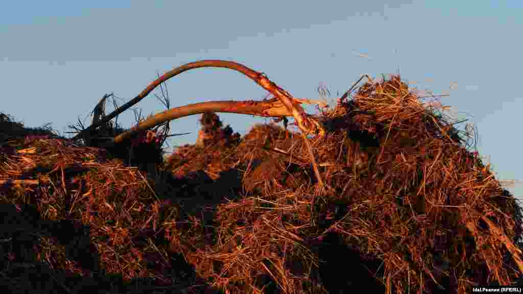 Впрочем, первые вестники беды появились уже тогда, в марте 2021-го. В поле за лесом уже работают экскаваторы (фото №17), плодородный слой почвы с заливных лугов уже снят (оставшиеся три фото). Это ООО "ПСУ" — дочка "Связьинвестнефтехима" (СИНХ), холдинга, принадлежащего Татарстану — уже готовит почву для строительства гольф-клуба. Размахнулись настолько широко, что земельного участка не хватило — так что искусственную сушу сейчас создают прямо на месте Волги.