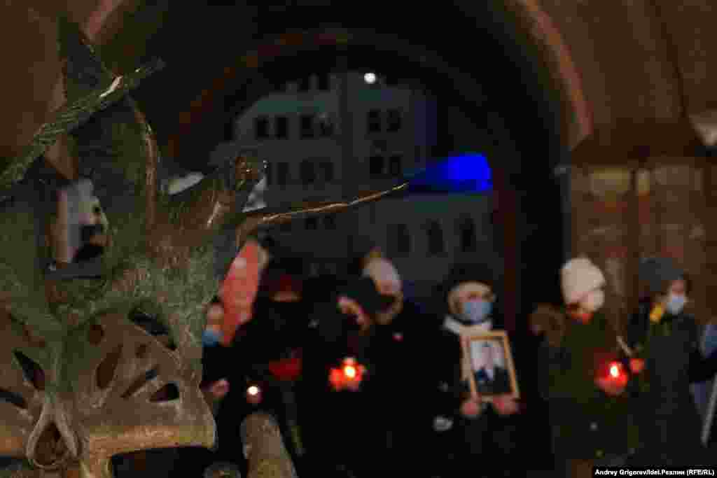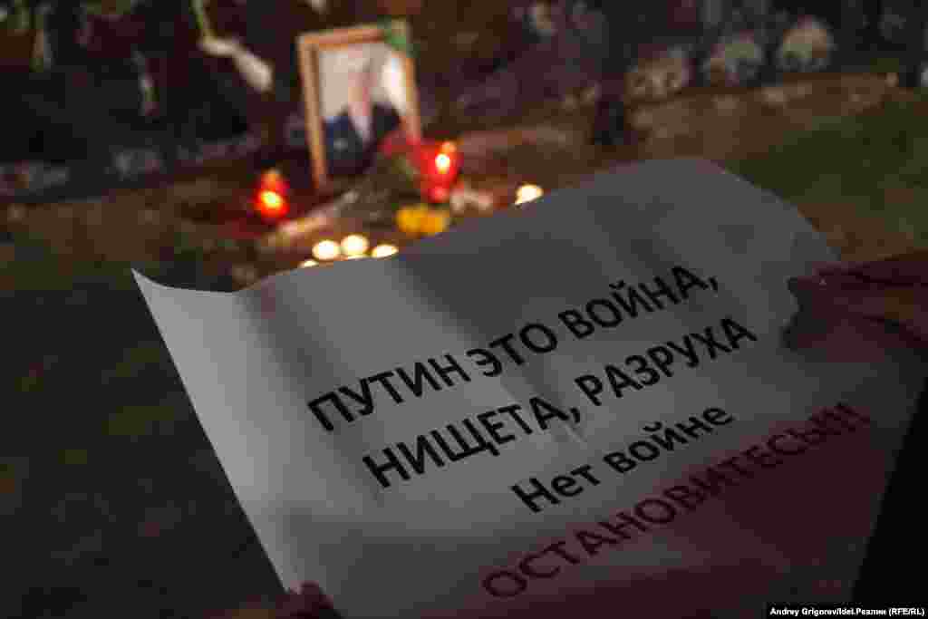 Собравшиеся хотели пройти по улице Баумана траурным маршем, держа в руках зажженные свечи и портрет, но замначальника полиции Казани Сергей Чанкин запретил им делать это, равно как и выкрикивать антивоенные лозунги под угрозой задержания. В итоге после долгого молчания под пристальным присмотром полиции собравшиеся оставили портрет, свечи и цветы у колокольни Богоявленского собора и разошлись.