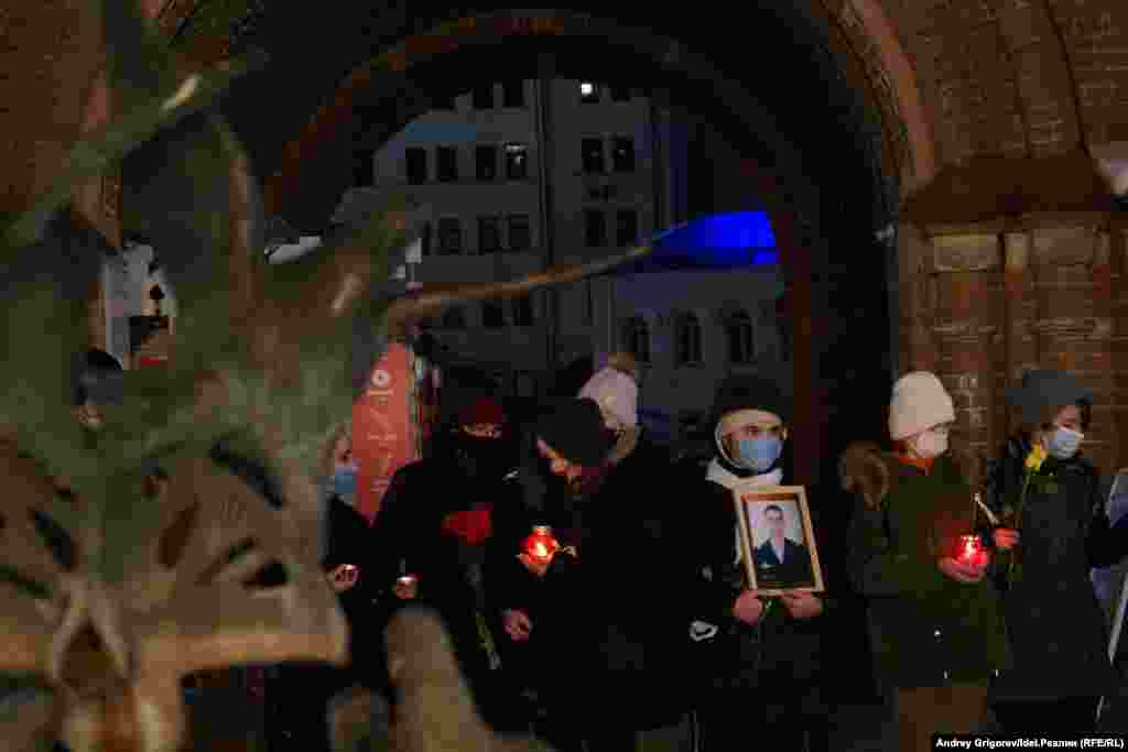У них были цветы, свечи и портрет первого официально признанного погибшим контрактника из Татарстана — уроженца Нижнекамска Ильнура Сибгатуллина.