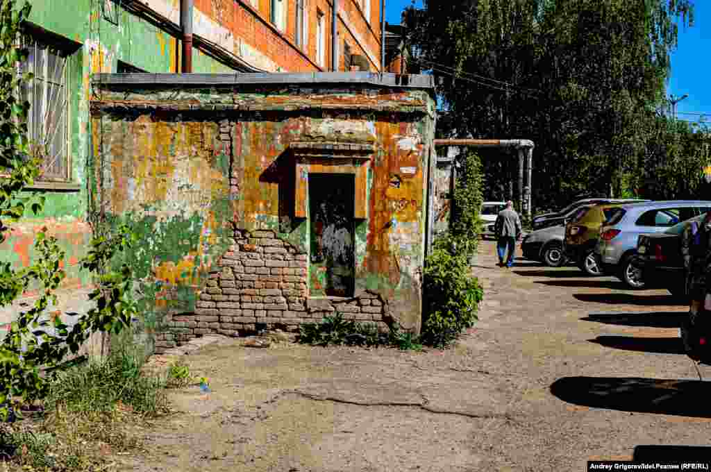 Бывшее общежитие завода обозных деталей на Мало-Московской, 30/13 тоже успели последовательно признать и градоформирующим историческим объектом (2017-й), и аварийным зданием (2018 год). Внутри обшарпанное здание выглядит ещё хуже: щели, штукатурка со стен и потолка отваливается кусками. «Удобства», кстати, расположены в дворе здания.