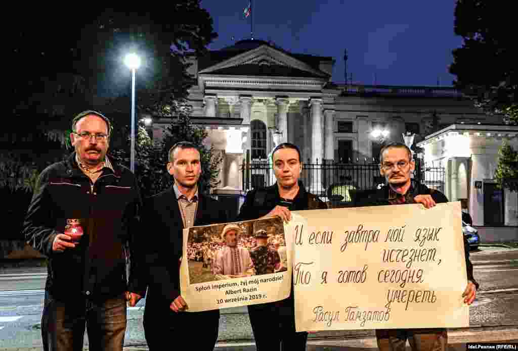 Пикет в память об удмуртском учёном Альберте Разине, который совершил акт самосожжения в знак протеста против национальной политики РФ 10 сентября 2019 года, провели в Варшаве татарские, бурятские и белорусские активисты. Акция прошла у посольства РФ. Таким образом участники заявили несогласие с проводимой путинским режимом политикой по отношению к народам России и соседних стран.