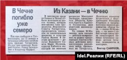 Слева от этой публикации в газете другая — "В Чечне погибло уже семеро": "Как нам сообщили в Татвоенкомате, на 12 января в чеченских событиях погибли семь граждан Татарстана".
