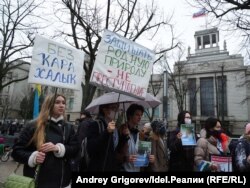 "Who killed Rifat Dautov?" (Кто убил Рифата Даутова?), "Stop repressions in Bashkortostan" (Остановите репрессии в Башкортостане), "Freedom for Alsynov" (Свободу Алсынову), "Без кара халык" (Мы все простой народ), "Защищать родную природу — не преступление" — плакаты такими лозунгами держали в руках активисты.